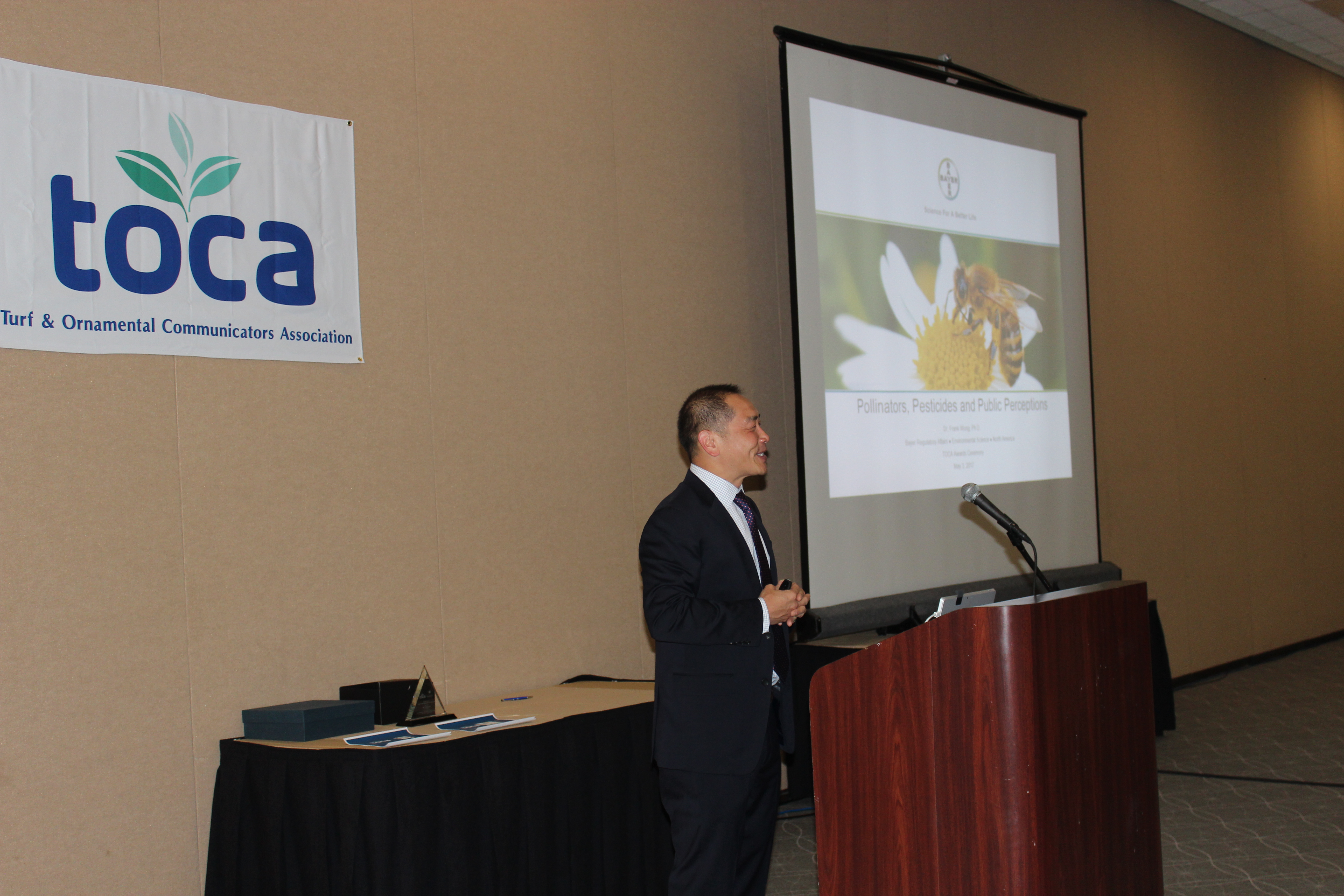 Dr. Frank Wong, the Bayer CropScience senior regulatory affairs consultant and the 2017 TOCA Environmental Communicator of the Year, shared his insights on Pollinators, Pesticides and Public Perceptions with TOCA members during the 2017 annual meeting.