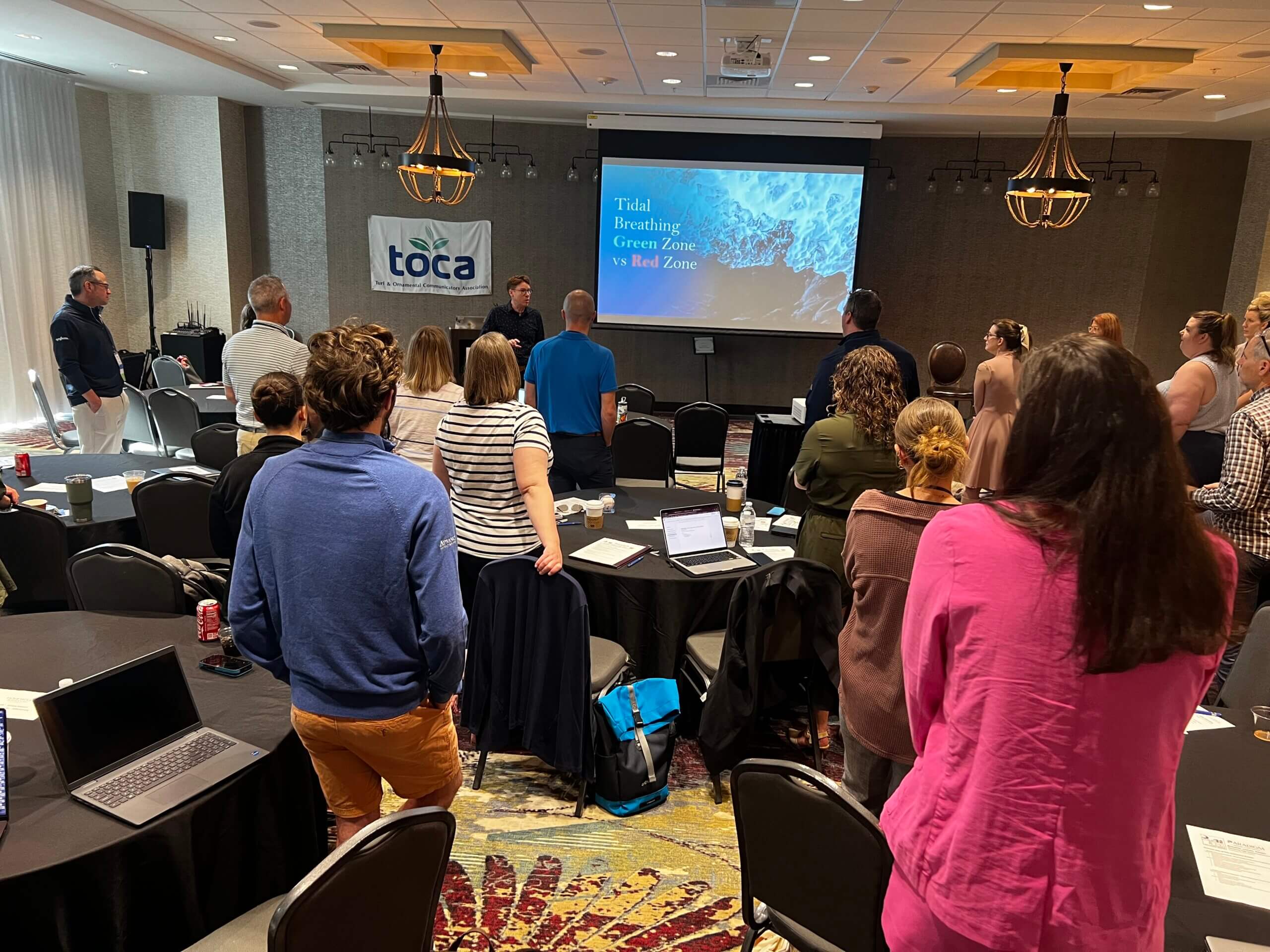 The final day of TOCA’s 36th Annual Meeting was accompanied by a chorus of members reciting communication coach John Matthew Patrick’s lessons: “Just breathe.” “One, two, three, four, five.”