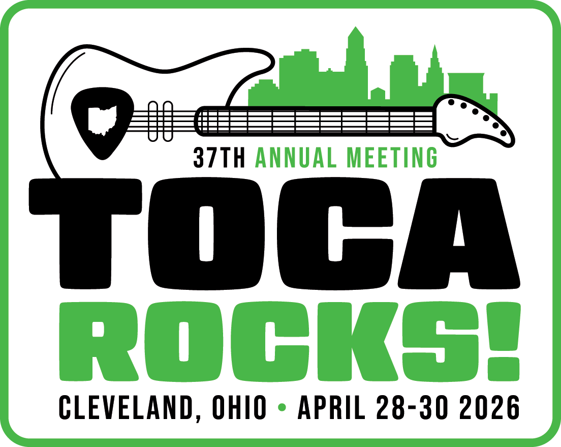 Cleveland Rocks! Cleveland is known as the birthplace of rock and roll, and is home to the Rock and Roll Hall of Fame. These two logos are based on Cleveland’s musical legacy and use the song “Cleveland Rocks!” to illustrate the upcoming TOCA conference. The original song was performed by Ian Hunter in 1979, but the 1997 cover by The Presidents of the United States of America has become the most recognized version, played after wins at Cleveland sporting events and featured on the Drew Carey Show. We used an electric guitar, guitar pick, Cleveland skyline and outline of the state of Ohio to show that TOCA will rock in 2026!