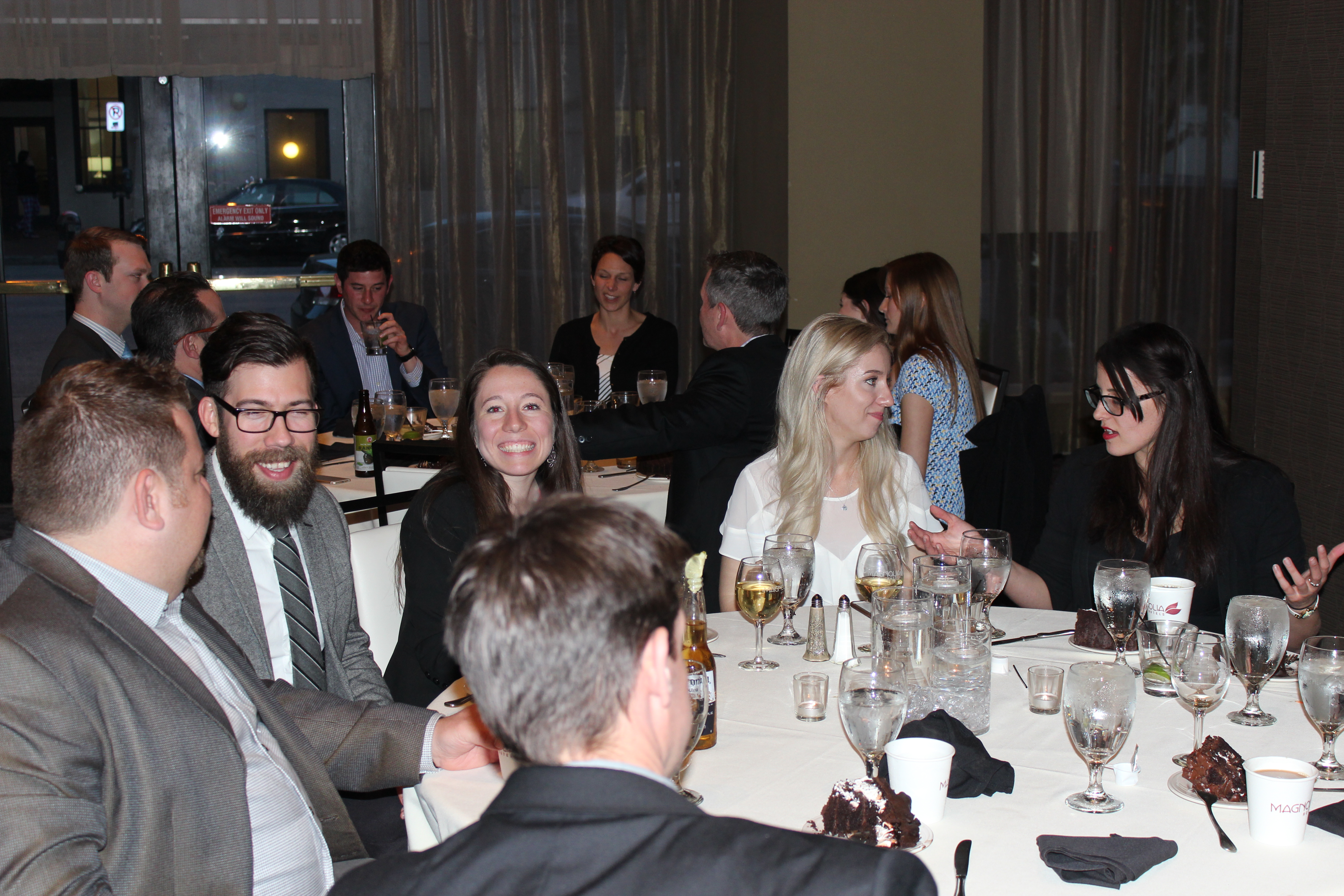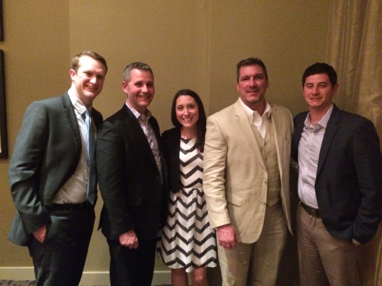 Some of the North Coast Media team at the 2016 TOCA awards dinner in Omaha (from left): Grant Gannon, Bill Roddy, Marisa Palmieri, Craig MacGregor and Jake Goodman.